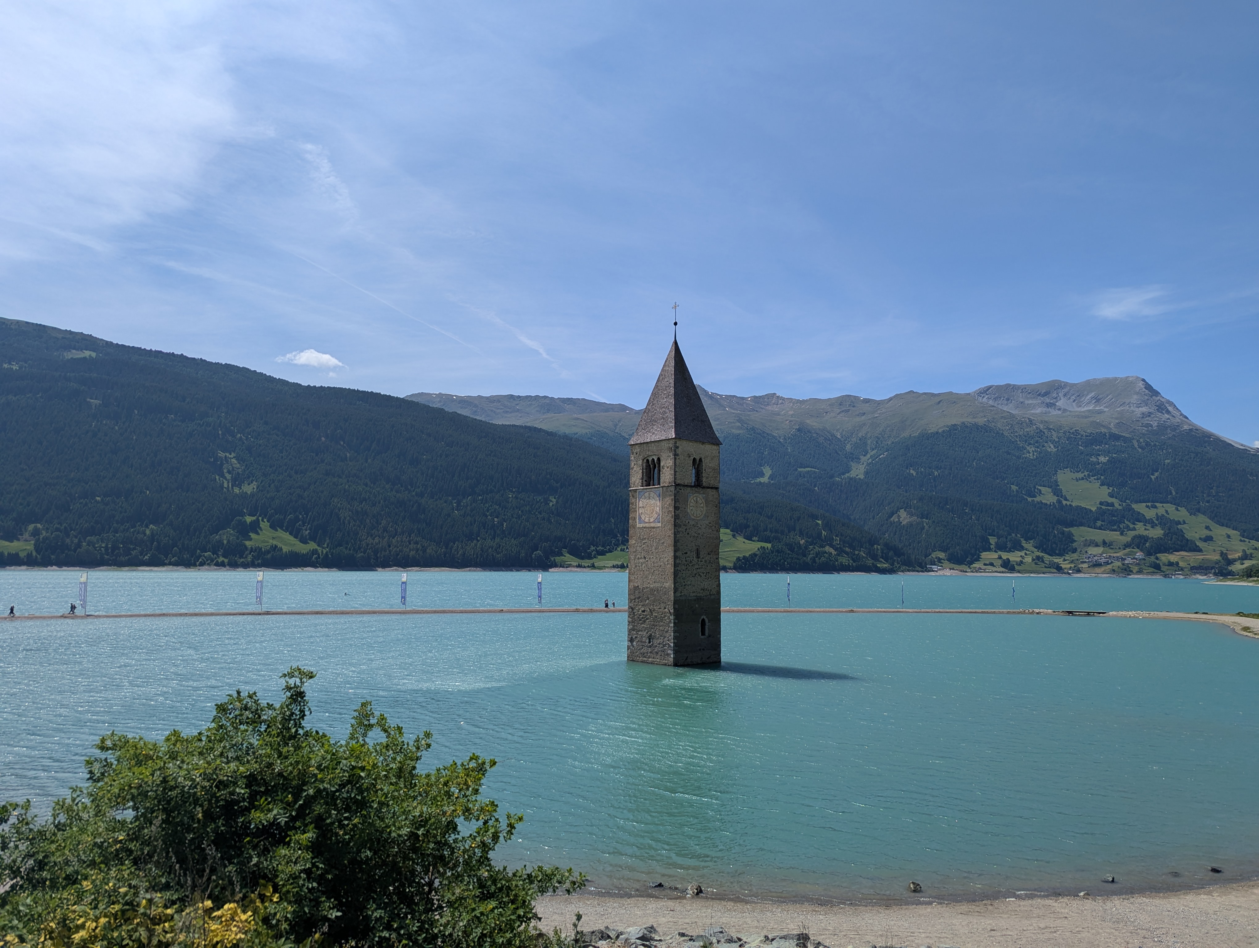 Today we will ride the most famous Italian pass, the Passo dello Stelvio and itās famous 88 curves and hairpins. But before weāll cross Switzerland to visit the Resia lake, to ride Umbrail Pass and finally we will reach our destination in Merano. Accommodation in a hotel in Merano.
