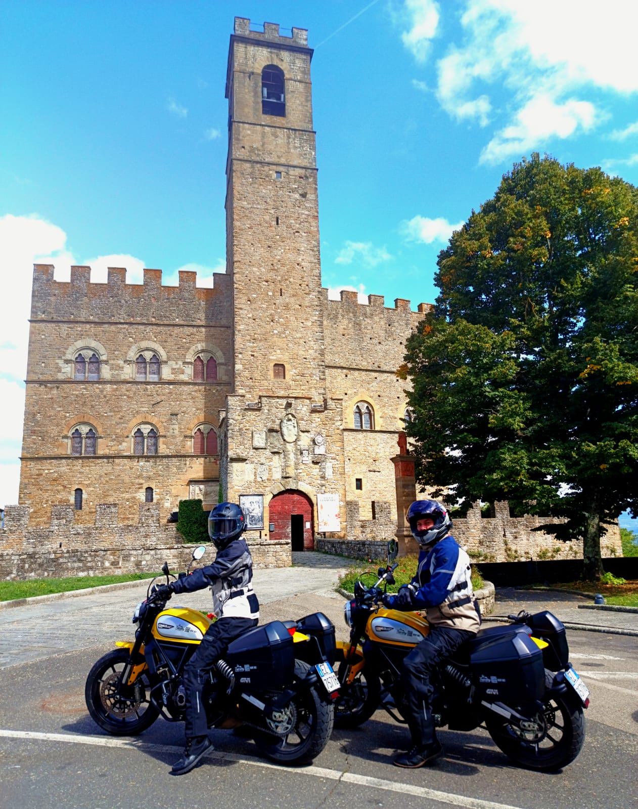 My husband and I had such a great time on this motorcycle tour, each riding the supplied Ducati Scramblers! We looked like adorable twins out there on the road and had so much fun riding “just like Italians”. The accommodations were wonderful, the food was terrific and our tour guide Paolo was such a pleasure to travel with. We were very appreciative of all of the photos that he took of us so that we didn’t arrive home with only “selfies”. Adrian was also very helpful in setting everything up for us and making us feel very comfortable with the motorcycles and accessories. We would highly recommend Tuscany Motorcycle Tours for anyone wanting to ride motorcycles in Italy! It was definitely the trip of a lifetime and we will never forget how much fun we had!